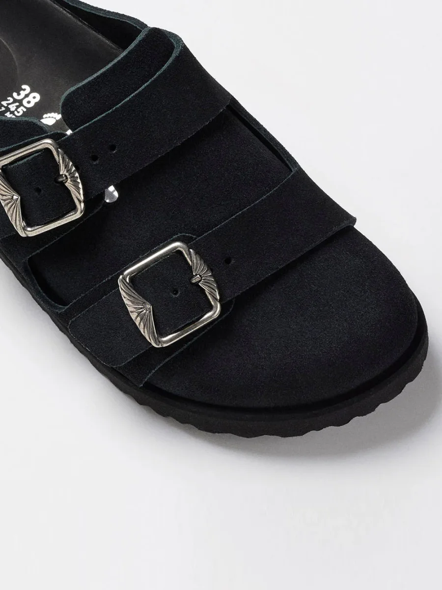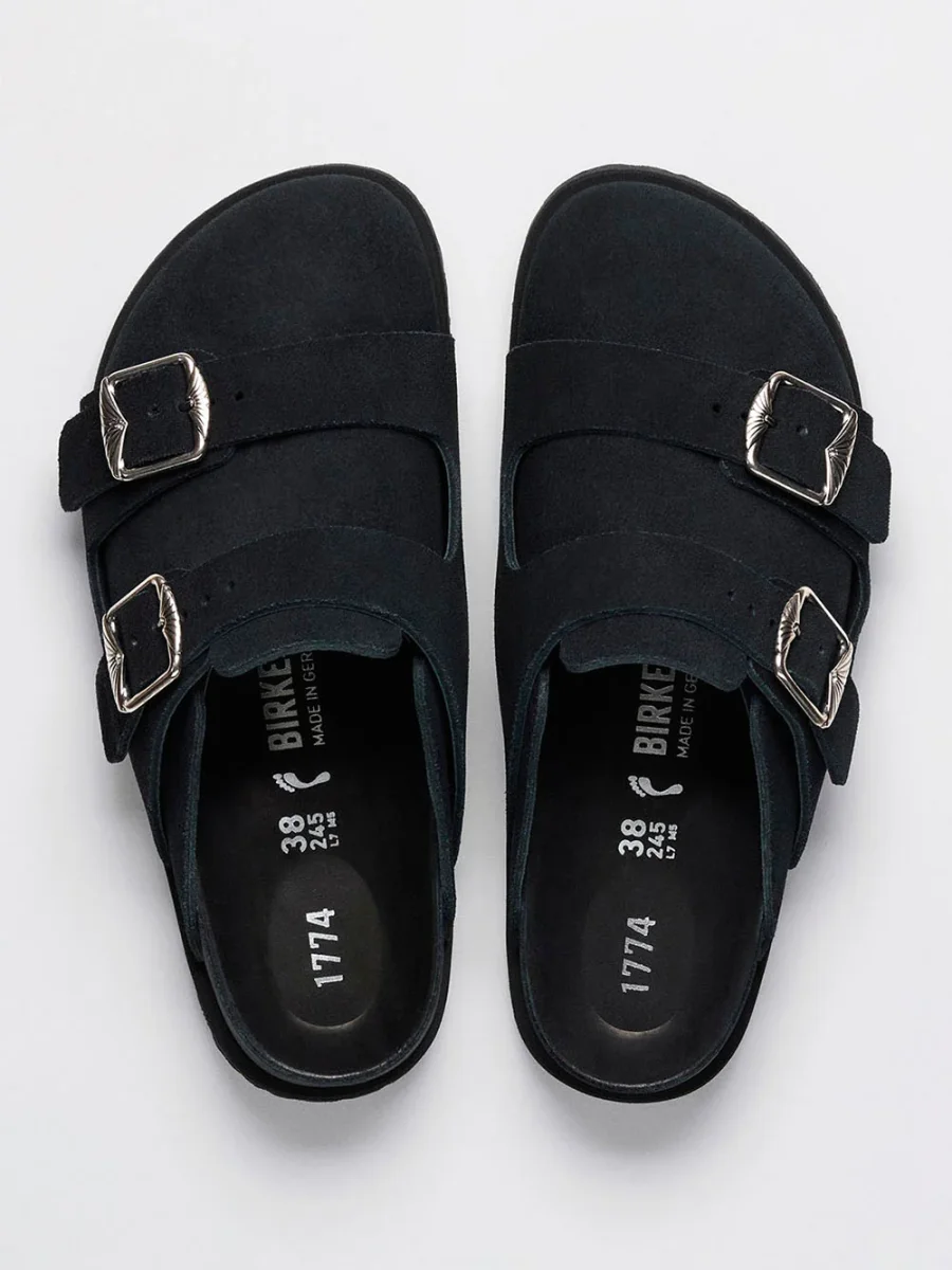 Aggiungi un tocco di raffinatezza contemporanea alla tua collezione di sabot con le Birkenstock 1774 222 West Suede in nero.