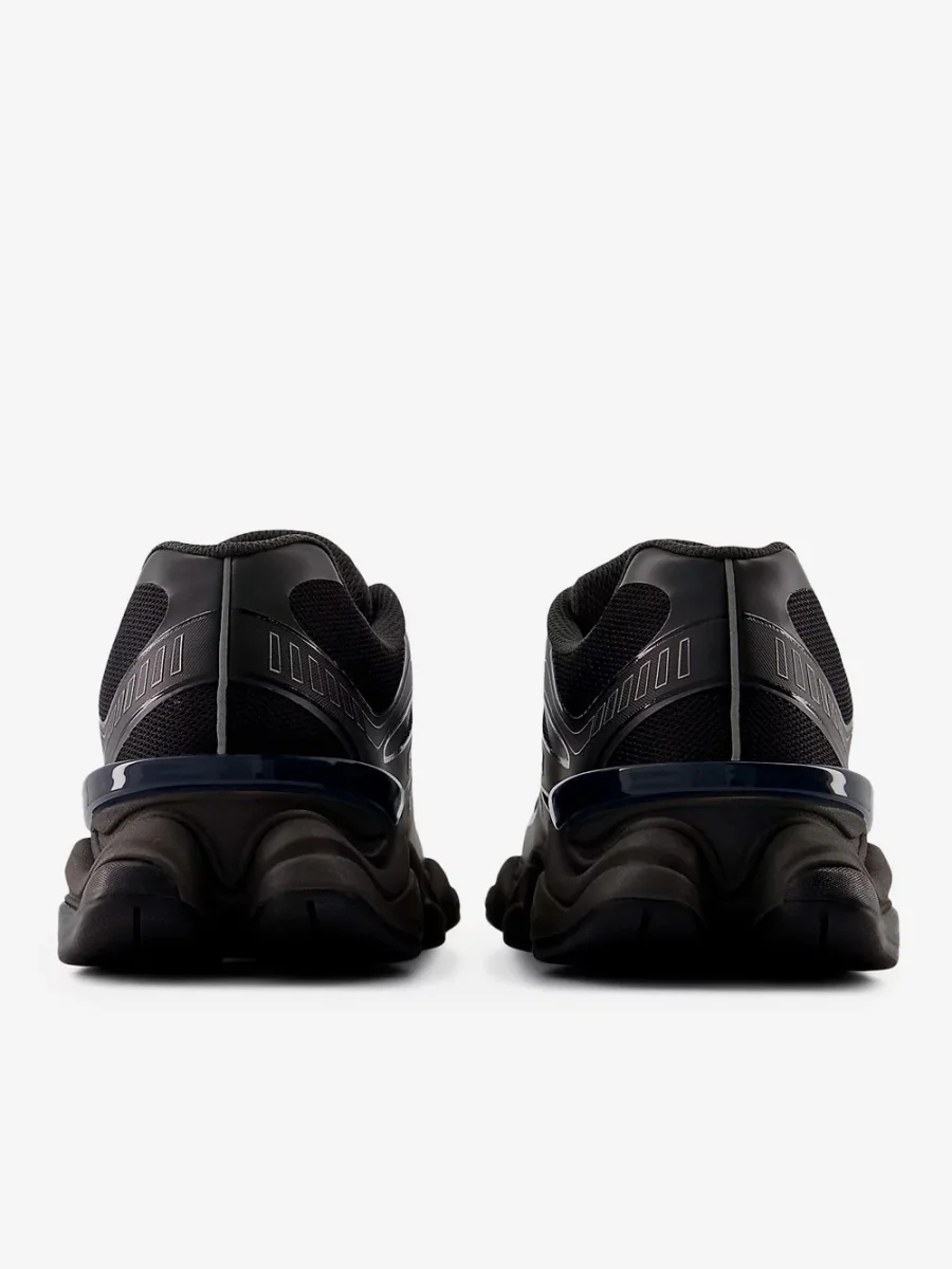 Le barre di oscillazione, riprese dalle New Balance 990, sono state ampliate e utilizzate su tutta la tomaia per conferire un senso di movimento visibile, mentre le linee ondulate e le proporzioni scalate sull’intersuola scolpita pongono un’enfasi esagerata sulle note piattaforme di ammortizzazione ABZORB e SBS.