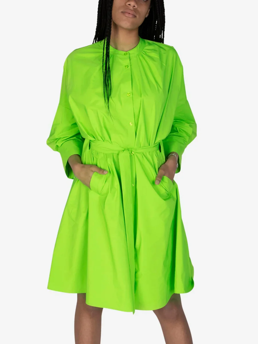 51% poliestere riciclato, 49% poliestere Abboottonatura frontale Colletto alla coreana Cintura in vita rimovibile Lunghezza al ginocchio Maniche a 3/4 Vestibilità: Fit regular La modella è alta 174 cm e indossa la taglia S