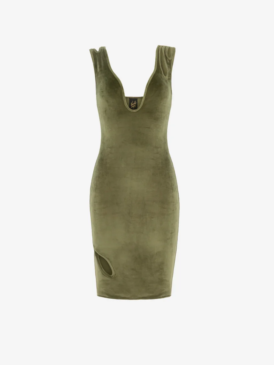 L’abito verde Elixir di Vanity Nap è l’emblema di un’eleganza femminile confortevole. Il taglio asimmetrico con dettagli cut-out crea una silhouette moderna, mentre il tessuto morbido ed elastico avvolge il corpo come una seconda pelle. Perfetto per le occasioni speciali o per una serata in cui vuoi sentirti al massimo dello stile.