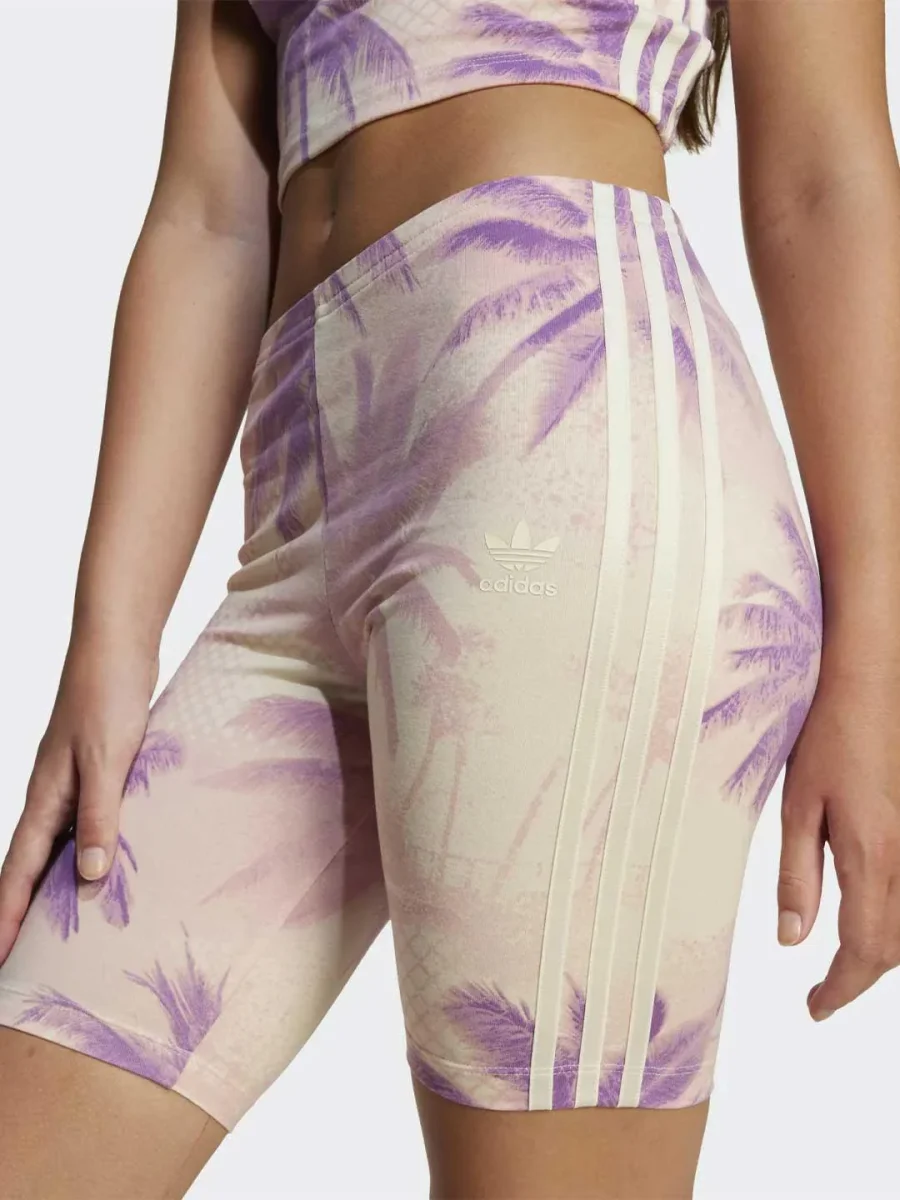 Leggings rosa Modello ciclista Vita elasticizzata Iconiche bande laterali in contrasto Logo sul davanti Fantasia su tutto il tessuto Vestibilità aderente