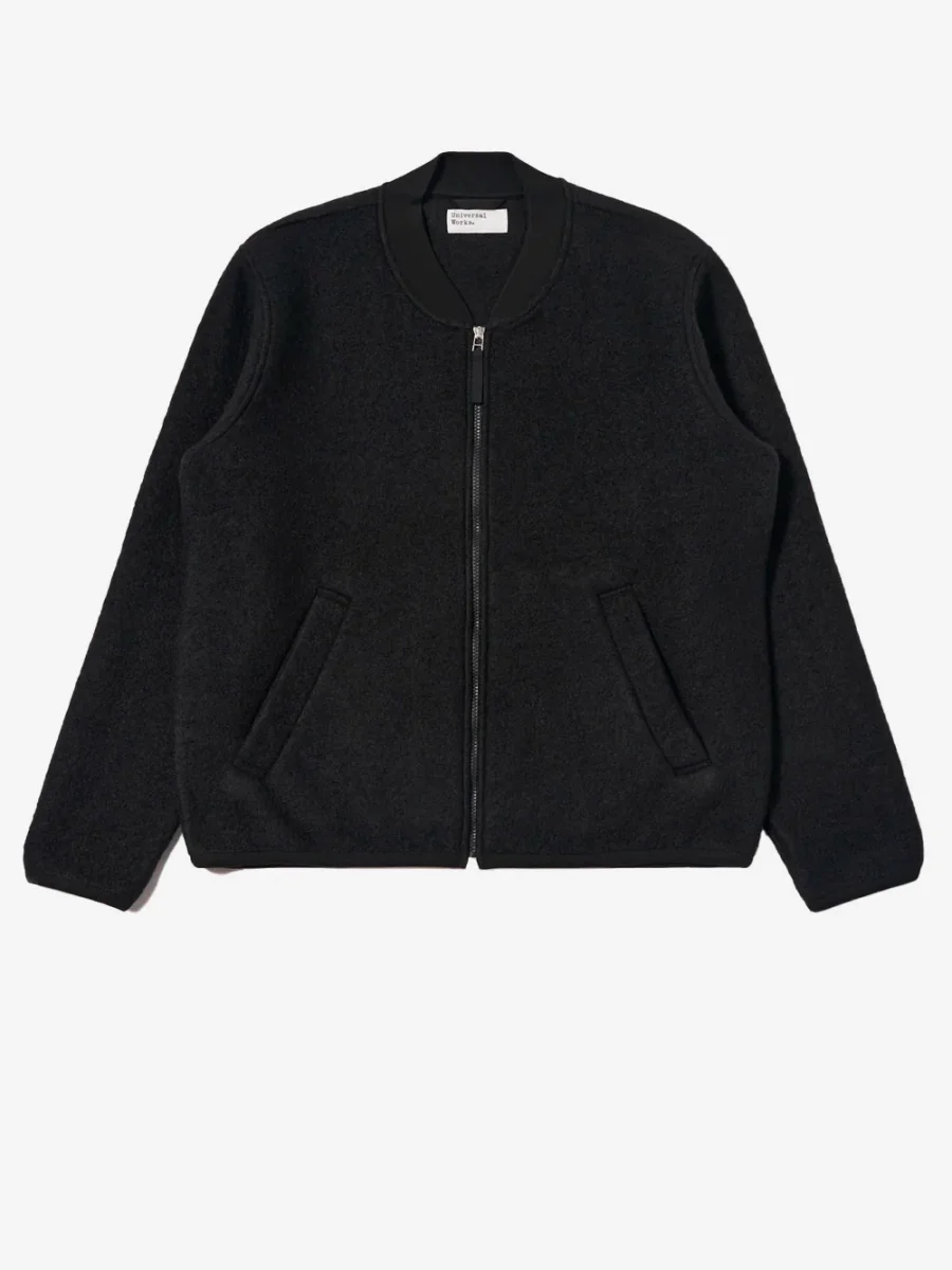 Lo Zip bomber di Universal Works è un basico del guardaroba maschile contemporaneo. Realizzato in pile di lana, questo bomber presenta linee pulite e dettagli funzionali come le due tasche a toppa e la pratica chiusura con zip a due vie per regolare la vestibilità a proprio piacimento. Il collo e i polsini a coste aggiungono un elemento di contrasto in termini di texture, creando un capo minimal ma dal design curato. Puoi indossare questo bomber sia nei momenti di relax in città con dei track pants o un paio di jeans oppure per look più curati insieme a pantaloni sartoriali e una camicia.