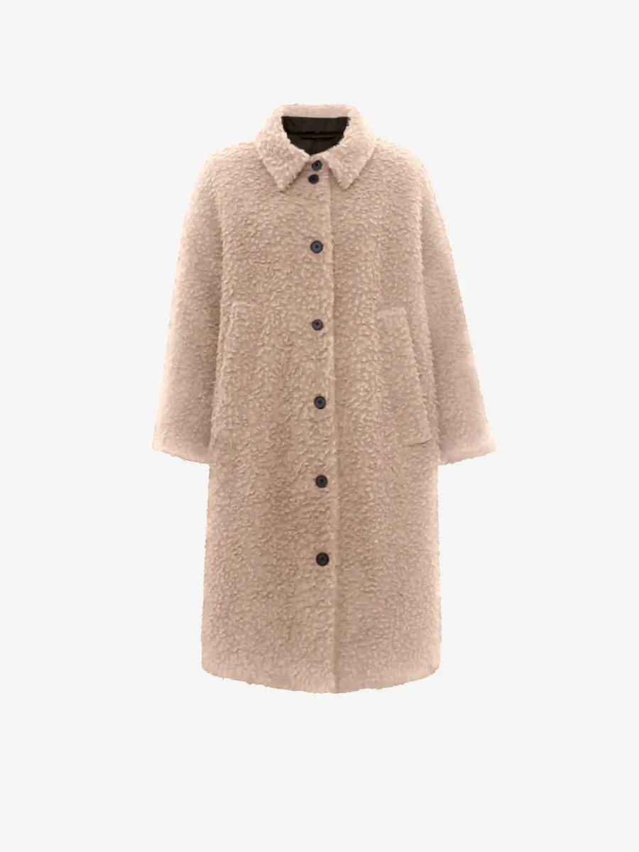 Cappotto beige in misto lana con colletto ‘Ricciolo’