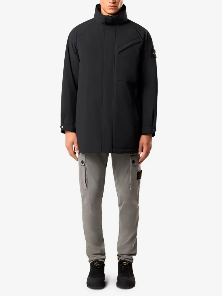 Il cappotto lungo in materiale tecnico di Stone Island รจ il meglio dell’outerwear contemporaneo. Realizzato in tre strati e dotato di una membrana impermeabile e antivento, questo cappotto di Stone Island รจ imbottito con uno strato interno di PrimaLoftยฎ Gold P.U.R.Eโข, un’esclusiva miscela di fibre al 100% riciclate dal diametro estremamente ridotto, che garantisce prestazioni termiche superiori. Le linee pulite e il design sperimentale lo rendono estremamente versatile, mentre i dettagli funzionali e le speciali tecnologie isolanti assicurano il massimo del calore nei mesi piรน freddi. Il modello รจ rifinito dall’iconico badge Stone Island, applicato sulla manica sinistra ed รจ trattato con uno speciale agente antigoccia.