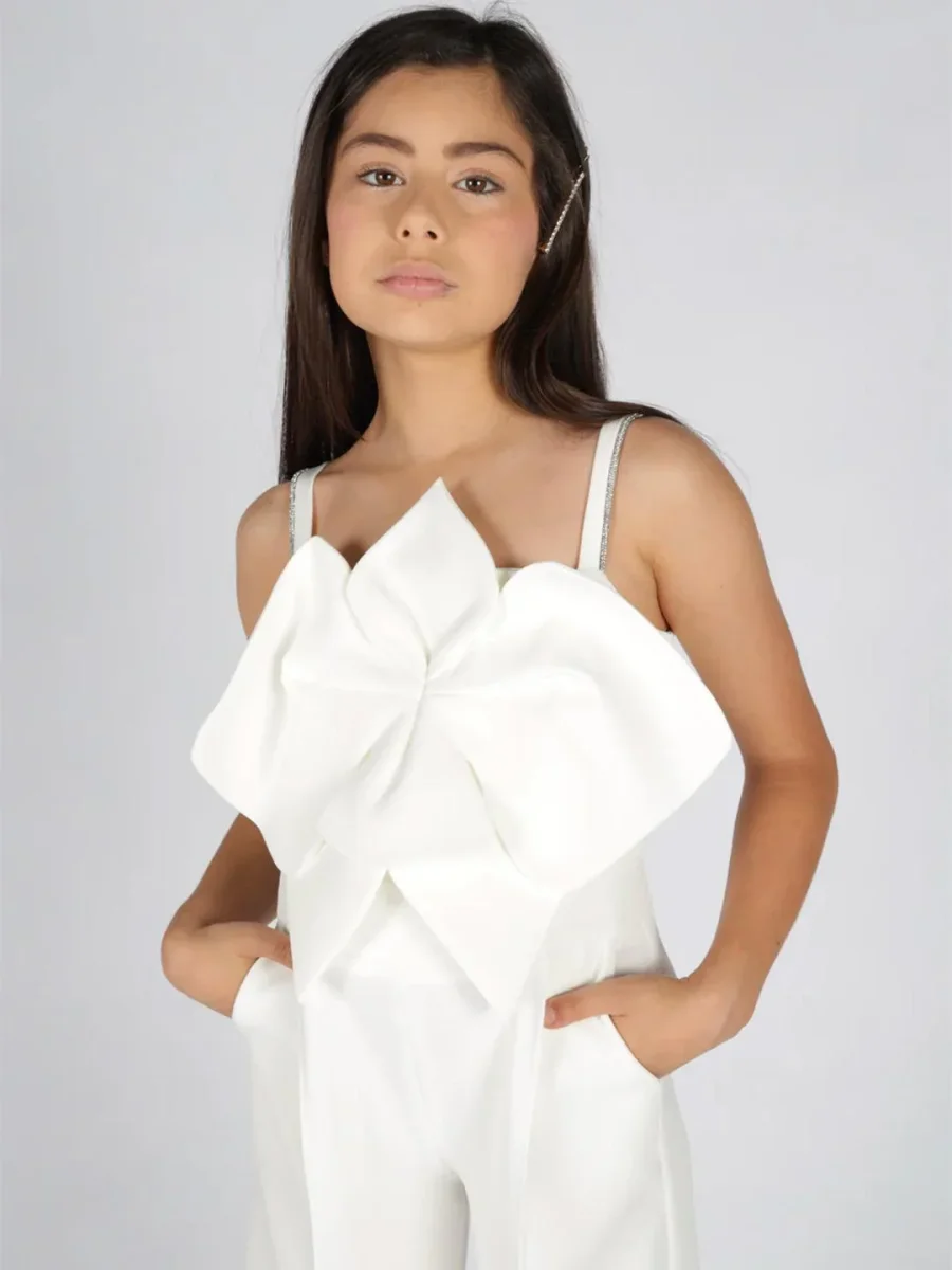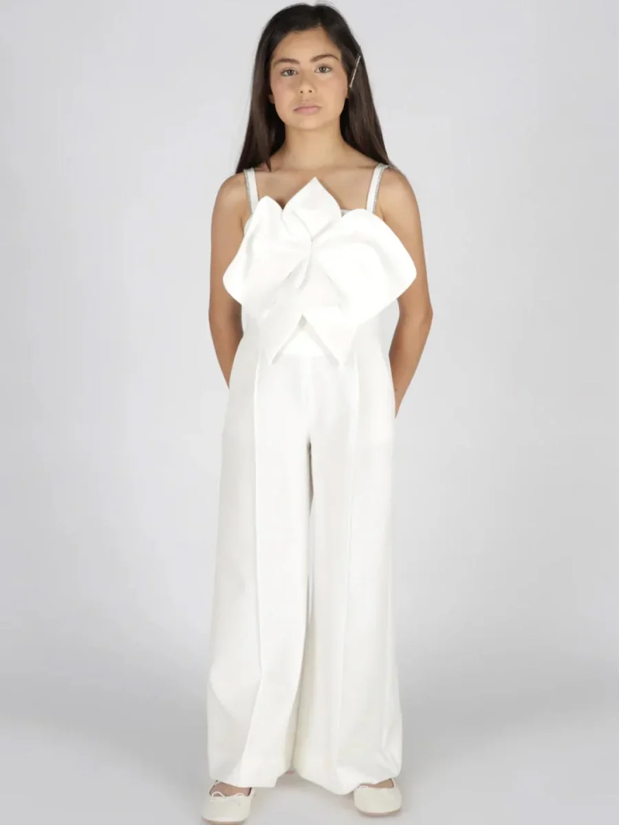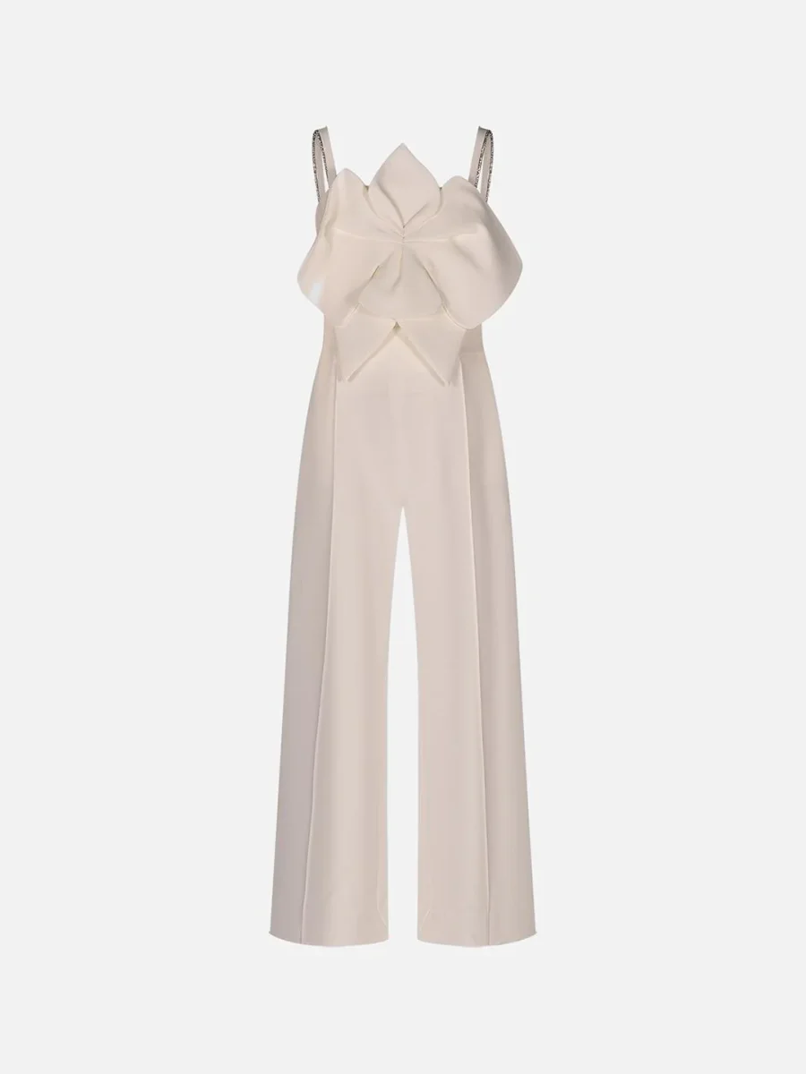 Tuta bianco Scollo quadrato Brettelle sottili fisse con strassApplicazione sul davanti Gamba ampia Vestibilità regolare