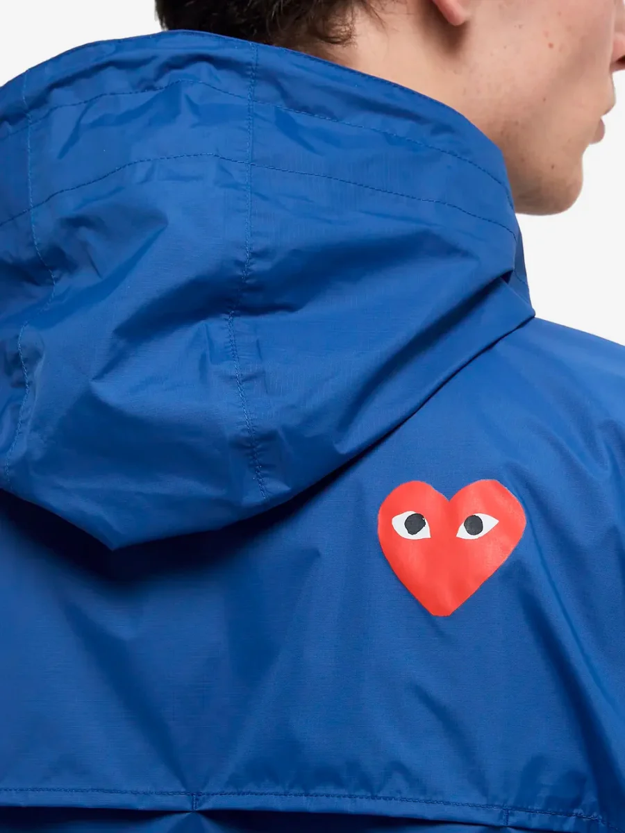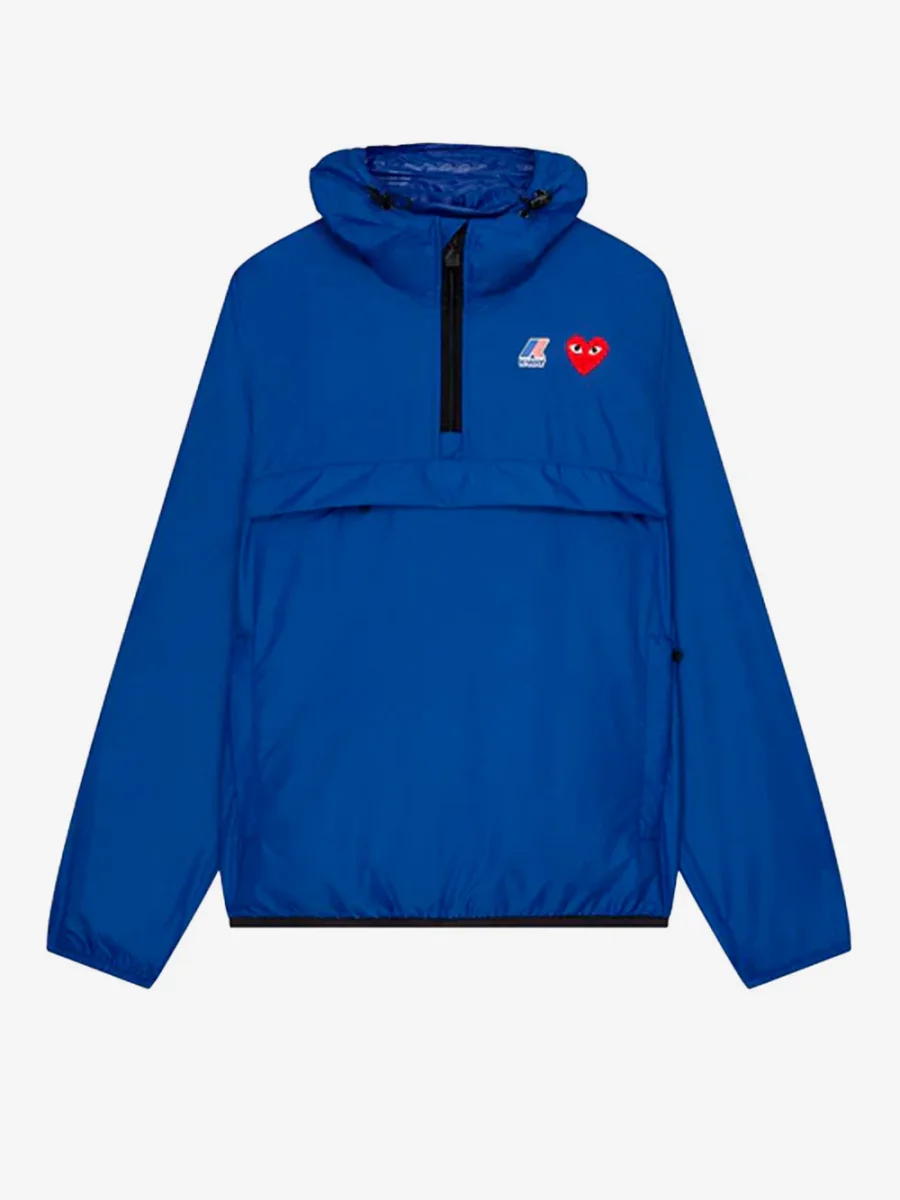 Dai look outdoor ai look streetwear irriverenti, questa giacca a vento blu CDG Play x K-Way รจ l’ideale per l’autunno e quando hai bisogno di stratificare piรน indumenti.