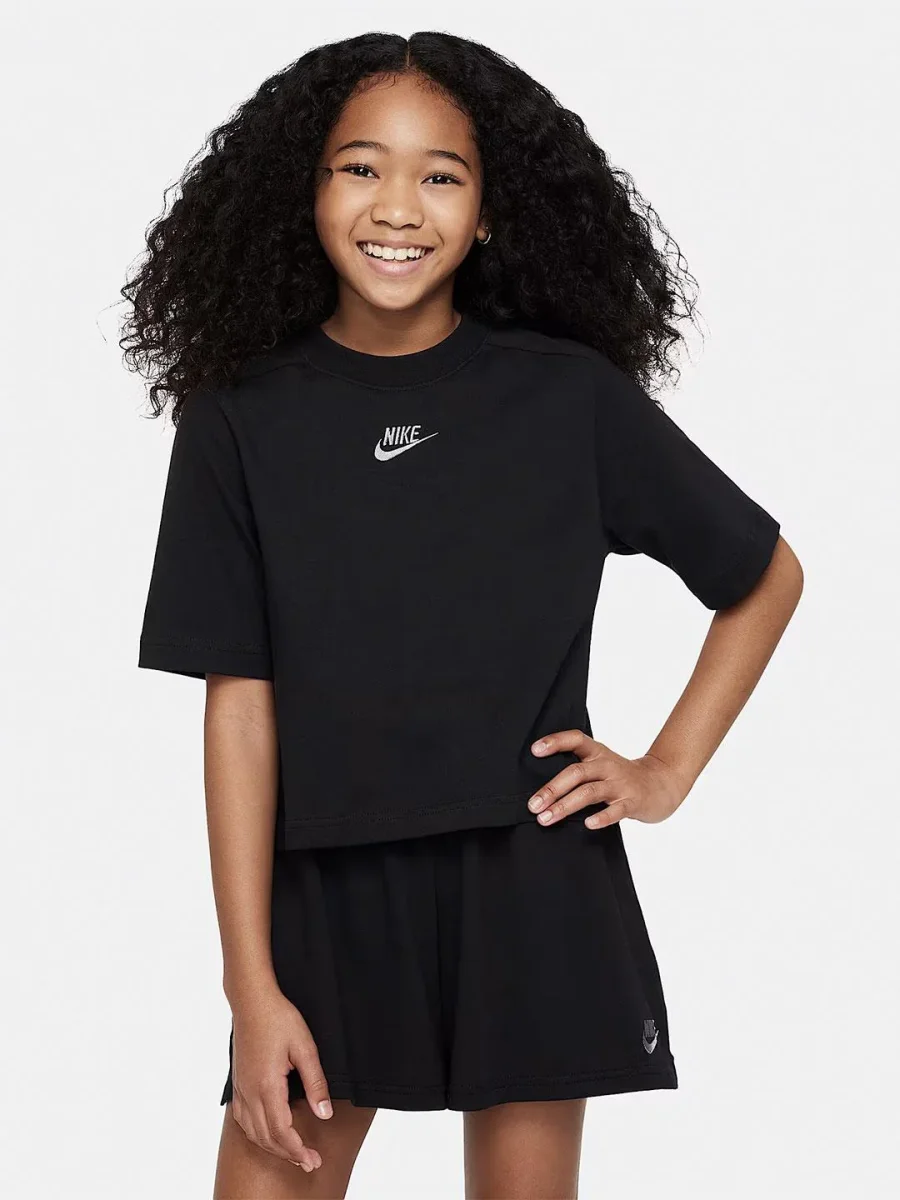 Parte di un setT-shirt nero Girocollo Mezza manica Logo in contrasto Vestiblità crop Composizione:100% Cotone