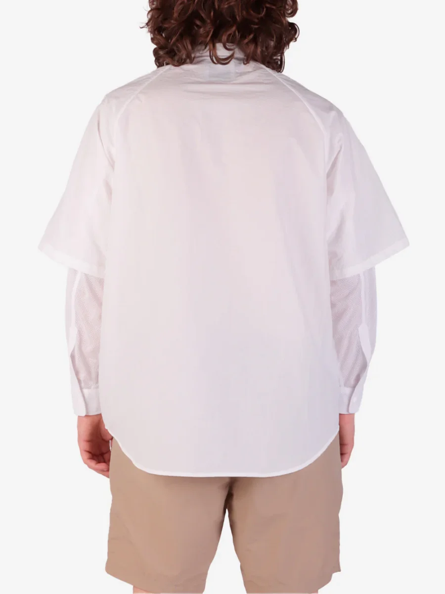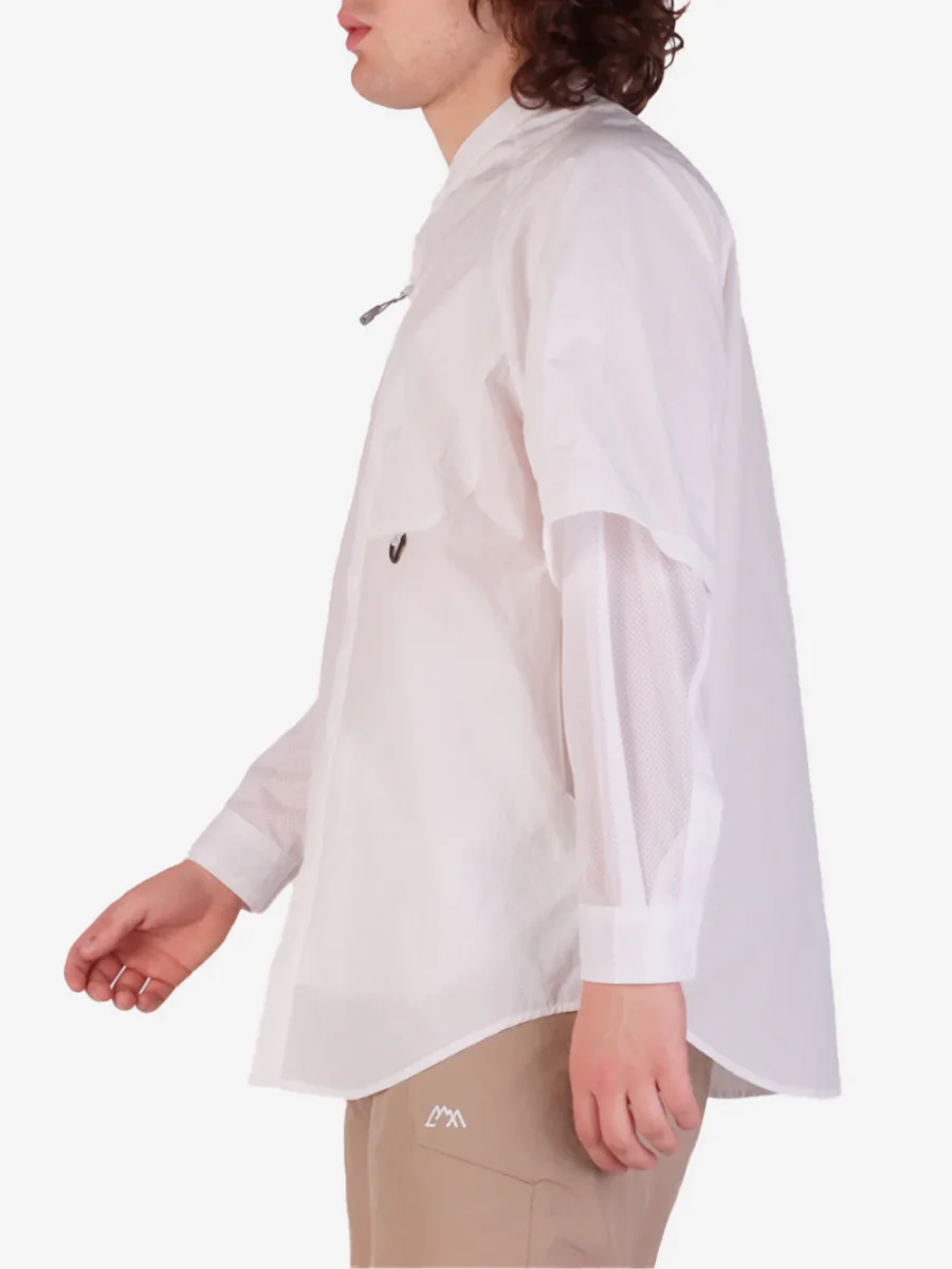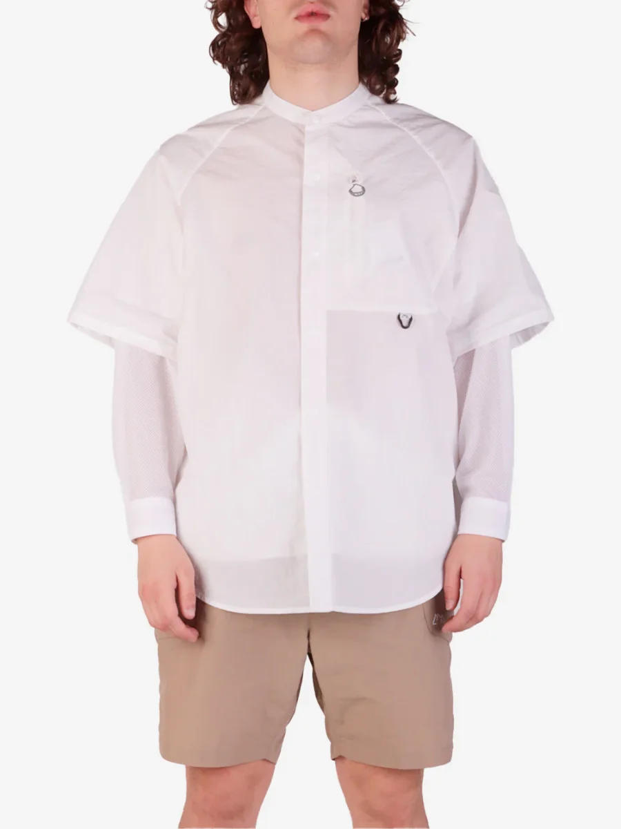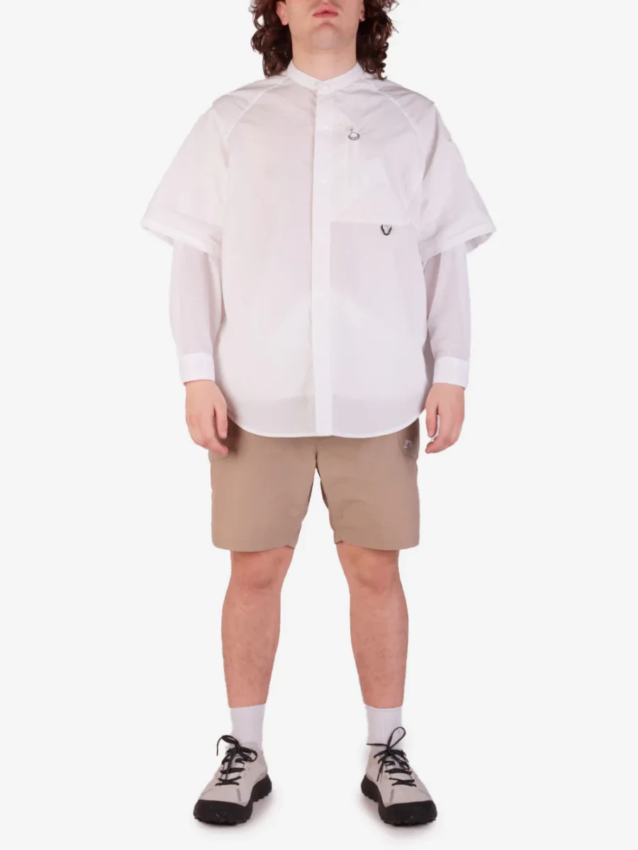 La No collar shirt di CMF Outdoor Garment è il capo tecnico che fonde streetwear e funzionalismo giapponese in un capo dal design moderno. Realizzata in tessuto tecnico altamente performante, questa camicia di CMF Outdoor Garment si distingue per un design a strati grazie alle maniche in mesh con polsini sportivi. Le maniche raglan regalano la massima libertà di movimento, mentre la tasca con zip sul petto insieme all’etichetta a bandiera con anello ad D aggiunge un ulteriore tocco utility al design mimal.