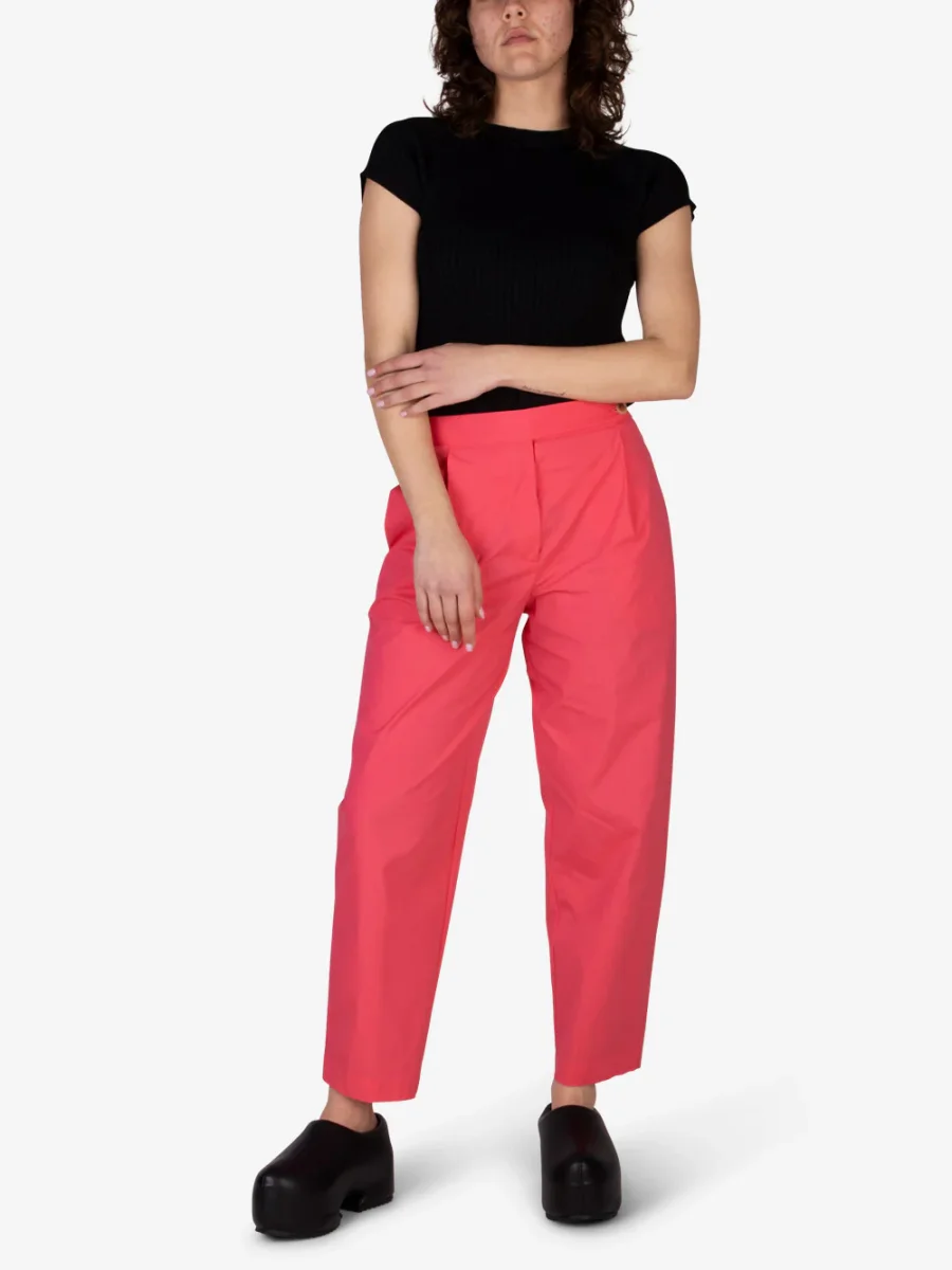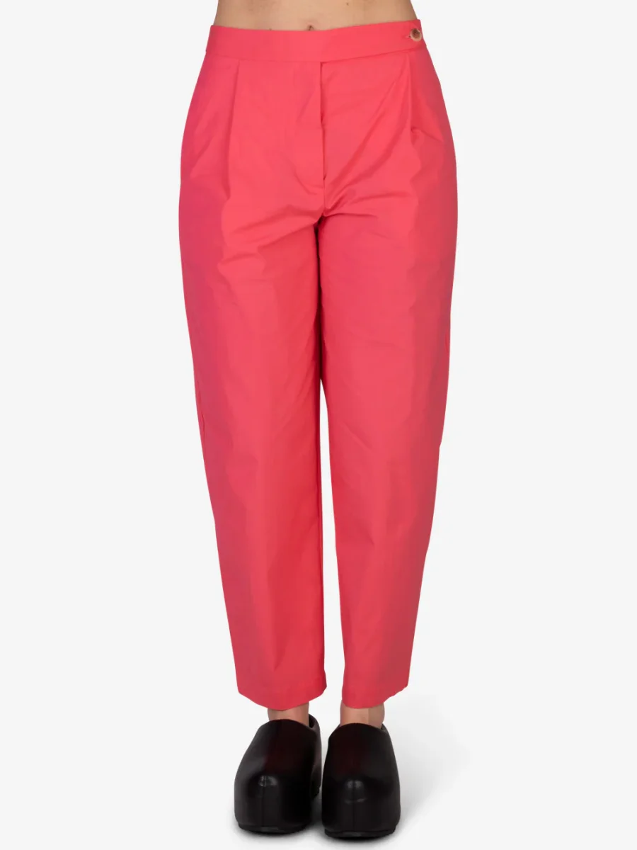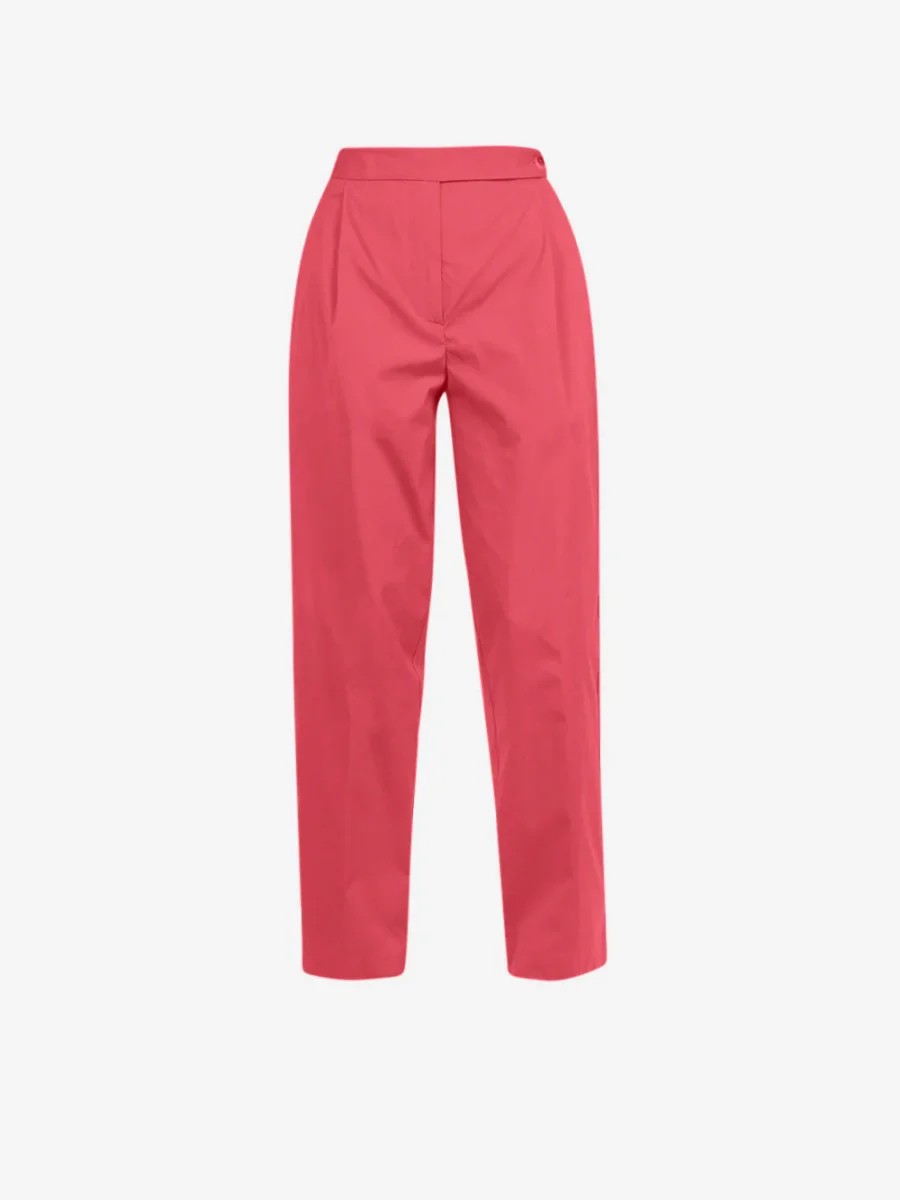 68% viscosa, 27% poliammide, 5% elastan Chiusura con zip e bottone laterale Pinces frontali Tasche laterali Lunghezza alle caviglie Made in Italy Vestibilità: Fit regular La modella è alta 176 cm e indossa la taglia 40