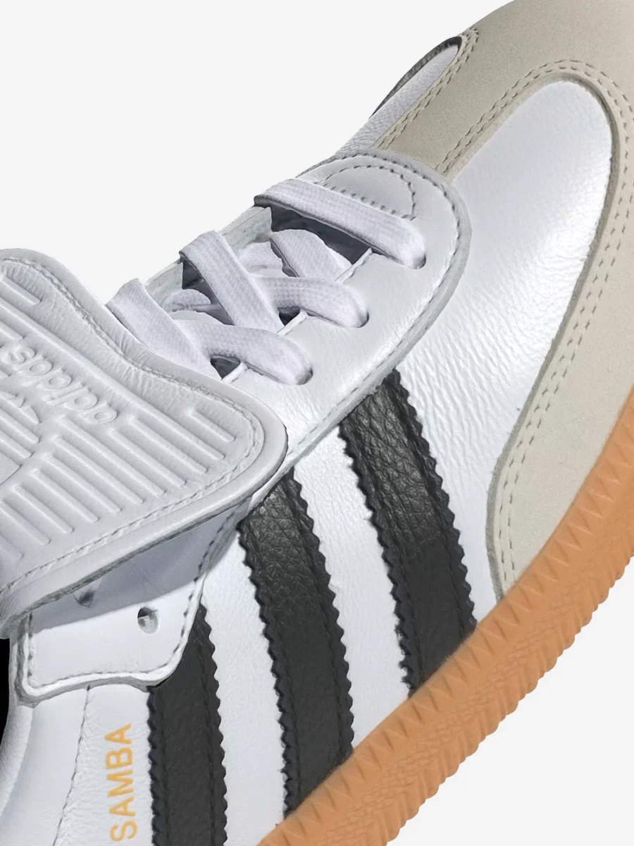 Eleva il tuo stile quotidiano con le adidas Samba LT, un’unione perfetta tra l’eredità calcistica e il fascino contemporaneo. Ispirate alle iconiche scarpe da calcio indoor Samba, queste sneakers aggiungono un tocco sportivo d’ispirazione old-school al tuo look. La tomaia in pelle premium offre comfort e durata nel tempo, mentre la raffinata punta in nabuk aggiunge un tocco sofisticato. La linguetta oversize ispirata al calcio dona un tocco distintivo e cattura l’attenzione. La suola in gomma dall’ottimo grip assicura stabilità e trazione su qualsiasi superficie.
