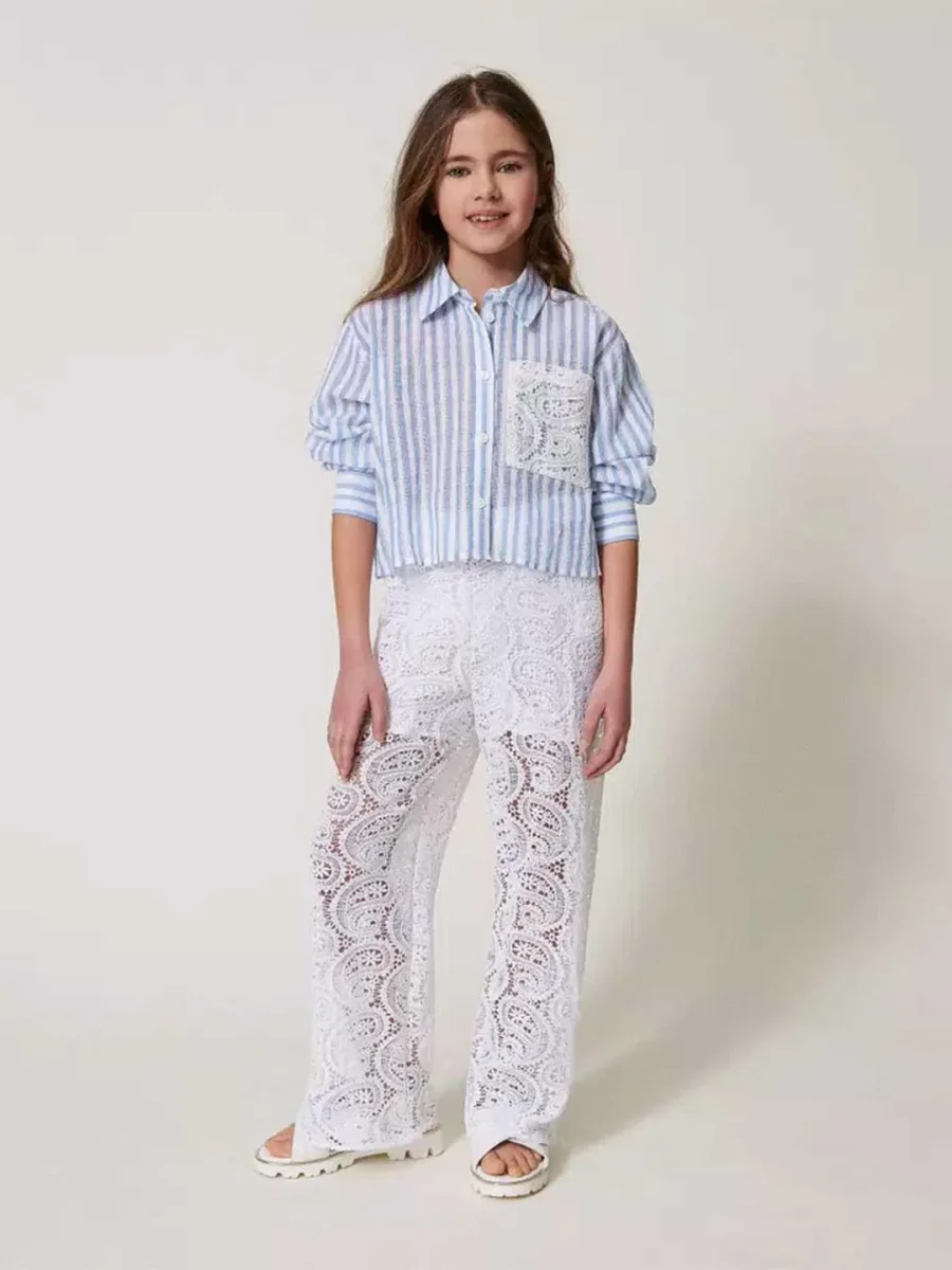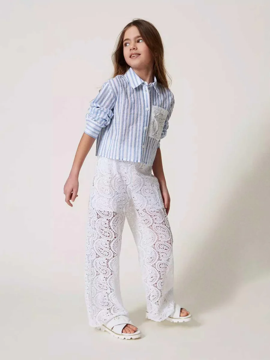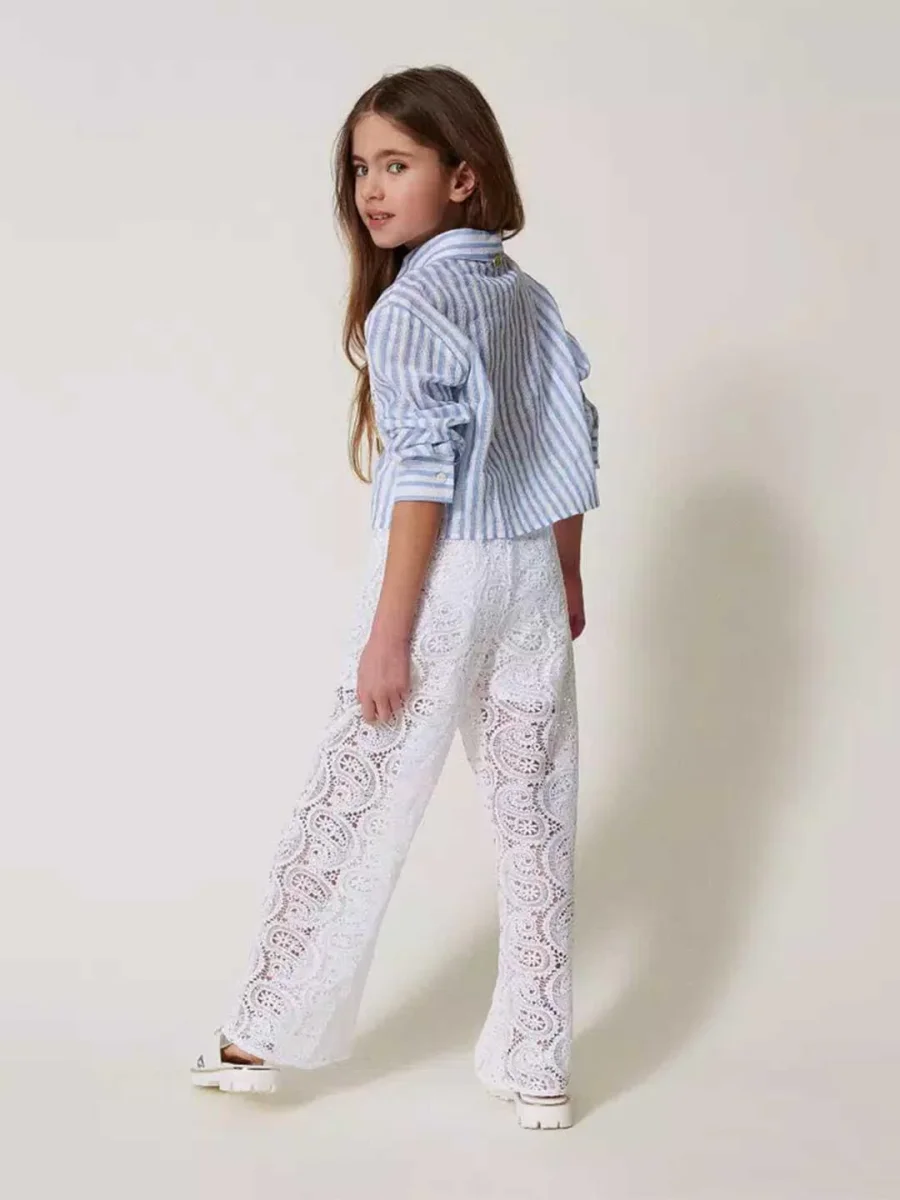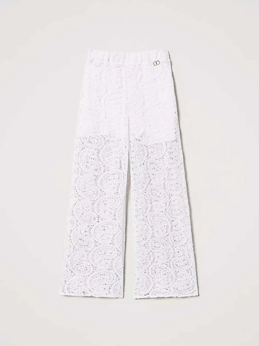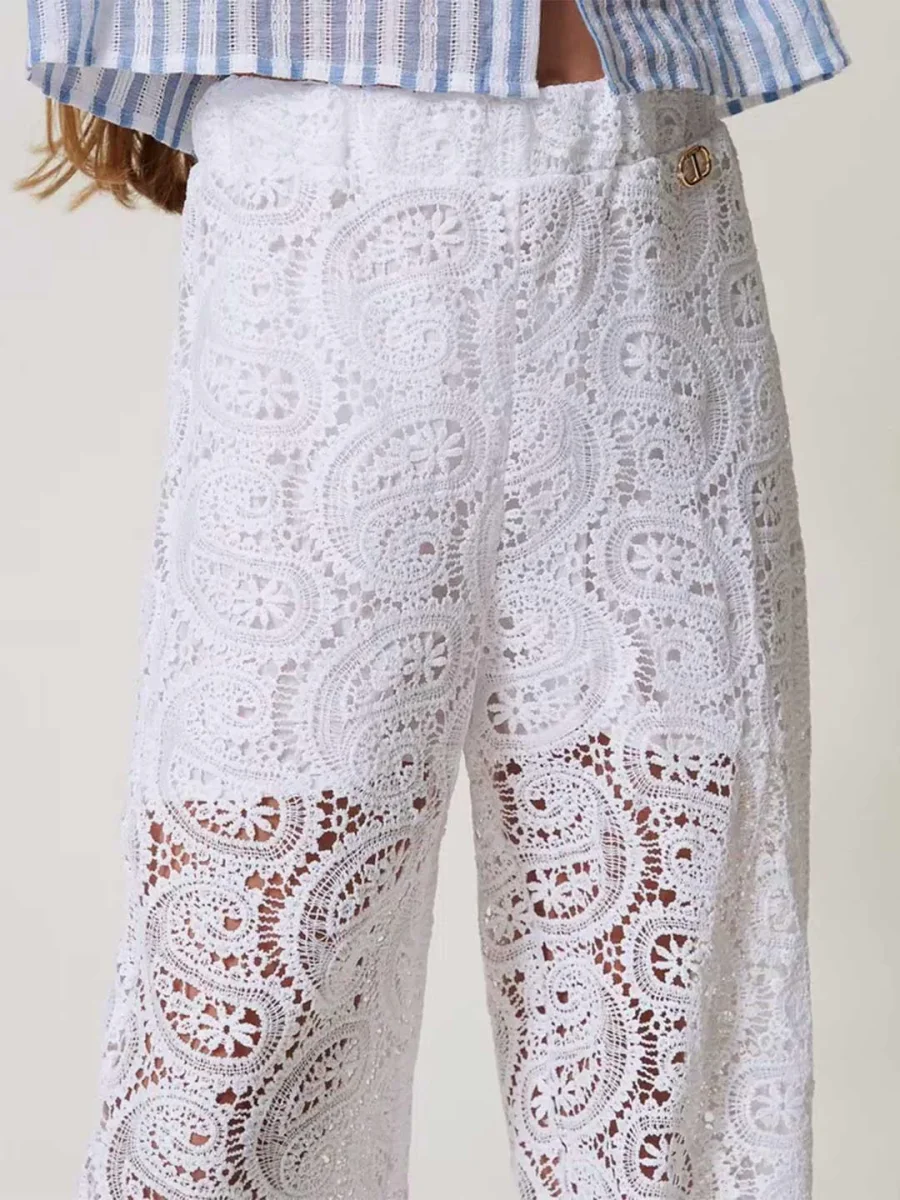 Parte di un setPantaloni bianco Vita elasticizzata Interamnete in pizzoFondo ampio FoderatoVestibilità regolare