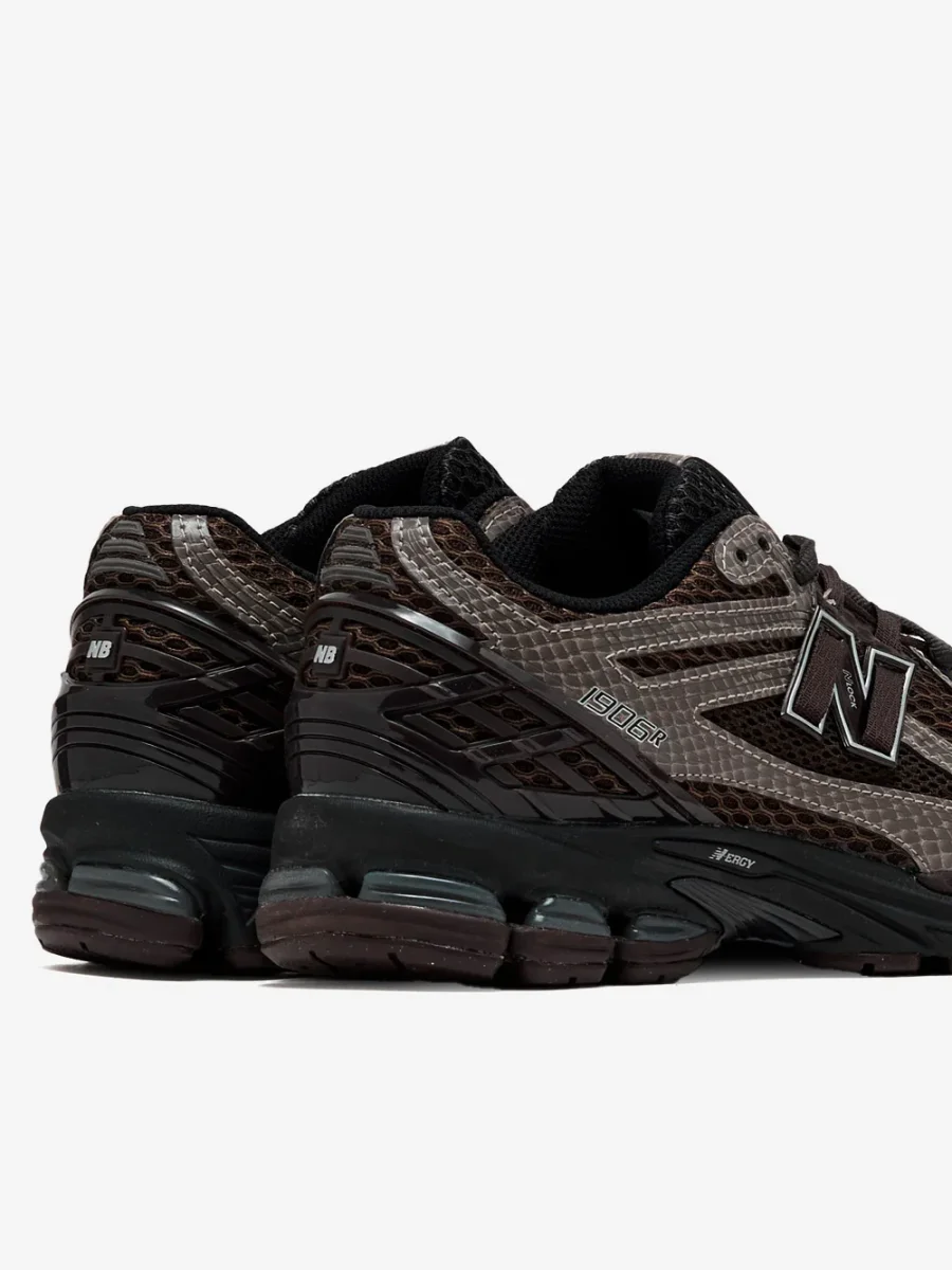 Le New Balance U1906 29R ‘Thunder Brown’ con nero sono le sneakers unisex dal design high-tech. La tomaia, realizzata in mesh a fori aperti e con rivestimenti sintetici curvilinei, si distingue per una palette cromatica che fonde l’opacitร dell’argento scuro con sottili dettagli in rosa.