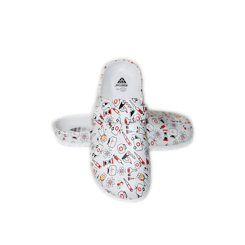 Zoccolo stampato ultraleggero in plastica EVA Fibbia regolabile sul collo del piede Ergonomico ed anatomico Resistente agli urti Zoccolo stampato ultraleggero in EVA Fibbia regolabile sul collo del piede Ergonomico e anatomico, con plantare ortopedico Resistente agli urti